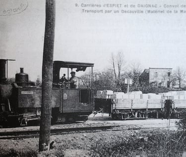 La demande en pierres calcaires, dont une grande partie proviennent de l'Entre Deux Mers, explose également. Les deux modes de transport traditionnels, l'attelage et la batellerie, vont peu à peu faire place au chemin de fer.